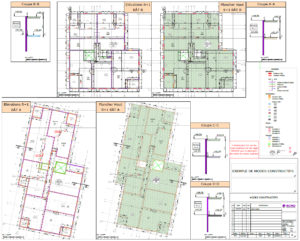 Lors de la préparation du chantier par les équipes travaux, des choix de modes de réalisation doivent être faits afin d’anticiper les éventuelles complexités liées à la construction de chaque ouvrage (Voiles, Poteaux, Planchers, Poutres, …). Sur cette base, nous pouvons établir les modes constructifs pour chaque niveau et les agrémenter de détails sur les particularités du projet. Le document final permet de présenter visuellement les hypothèses prises et facilite la compréhension de l’ouvrage à construire.